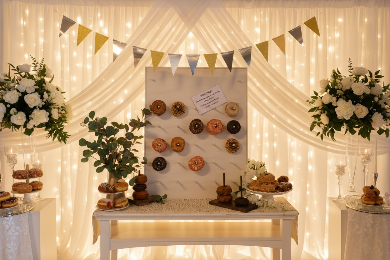 Display Options & RentalsAll doughnut orders are boxed and ready for pickup. You can serve them directly from the box or plan your own display. Doughnut Wall Rental- A fun and photo-ready twist for any party!