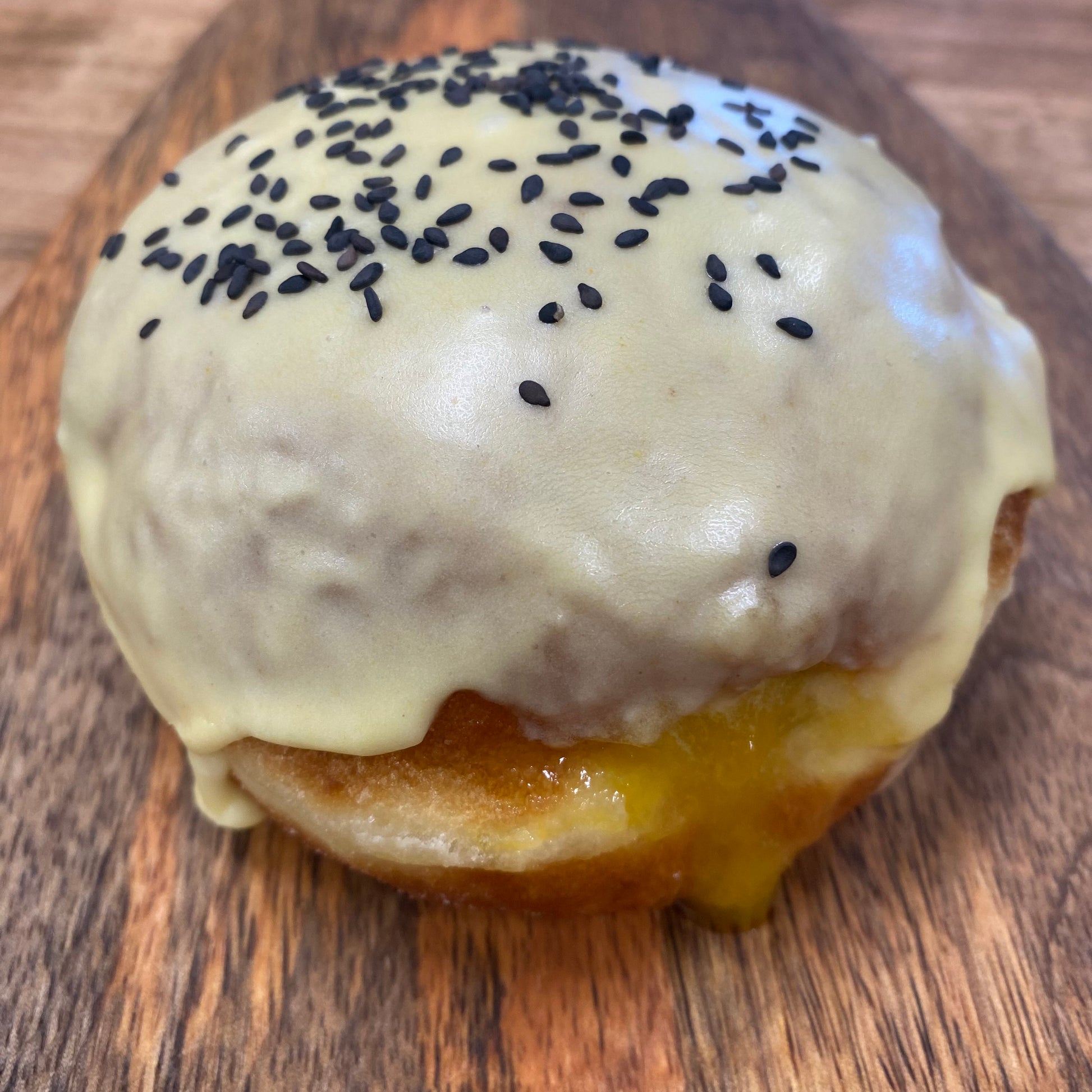 A Vibrant house-made tropical mango jam nestled inside a slow-rise brioche. Finished with a sharp, fresh-pressed ginger glaze and a delicate crunch of toasted black sesames for a deep, nutty finish.